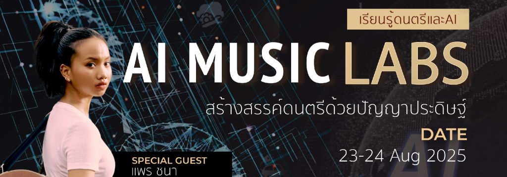 สร้างสรรค์เสียงด้วยปัญญาประดิษฐ์ แต่งเพลงผ่าน AI กับหลักสูตร “AI MUSIC LABS” เมื่อ AI ไม่ใช่แค่เทคโนโลยี แต่คือเครื่องมือสร้างอารมณ์ผ่านเสียงเพลง!เรียนรู้ดนตรี และ AI สร้างสรรค์ดนตรีด้วยปัญญาประดิษฐ์ อย่างถูกวิธีตามหลักทางดนตรี จากไอเดียเล็ก ๆ สู่บทเพลง เรียนรู้วิธีใช้ AI เปลี่ยนจินตนาการให้กลายเป็นเสียงดนดรี แต่งเนื้อร้อง จัดเรียงเสียง ผสมผสานอารมณ์ “ด้วยเครื่องมือสร้างสรรค์ที่ทุกคนเข้าถึงได้” . Workshops เดียวที่รวมทั้งแรงบันดาลใจ ความรู้ และเวทีโชว์ผลงานจริง!พร้อมพบ แขกรับเชิญพิเศษ “แพร ชนา” เจ้าของเพลงดัง “คลื่น” คุณจะพบกับ:- เรียนรู้จากวิทยากรผู้เชี่ยวชาญ – ใช้เครื่องมือ AI ตัวจริงอย่าง SUNO, AIVA, Amper – เขียนเนื้อร้อง สร้างเสียงดนตรี แต่งเรียบเรียงครบวงจร – โอกาสได้รับเลือกนำเพลงที่เรียนมาแสดงกับวงดนตรีสด! วันที่อบรม: 23-24 สิงหาคม 2568 (Workshops […]